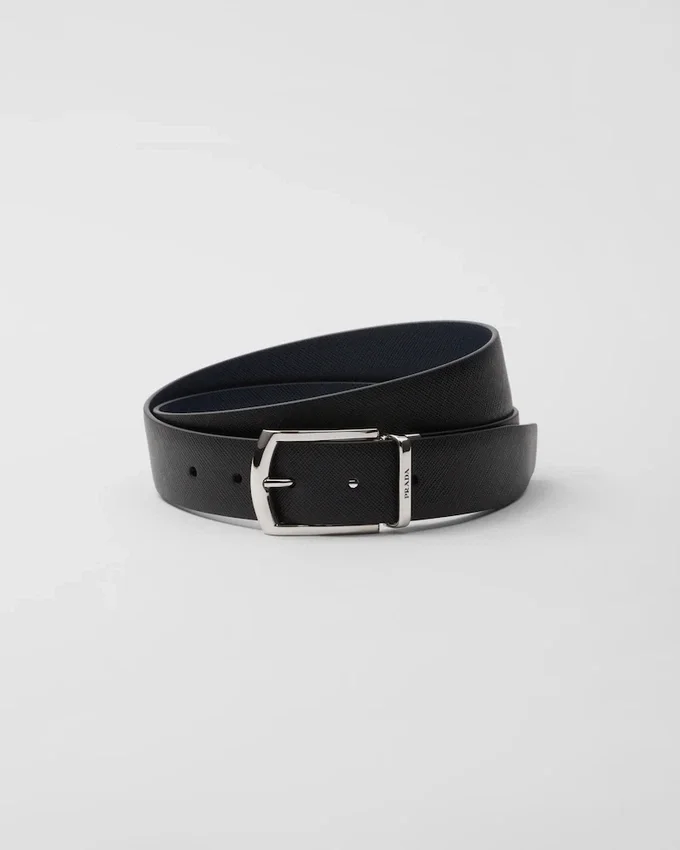 This Fine Saffiano Leather Belt Characterized by Its Reversible Design Has an Elegant Metal Buckle.