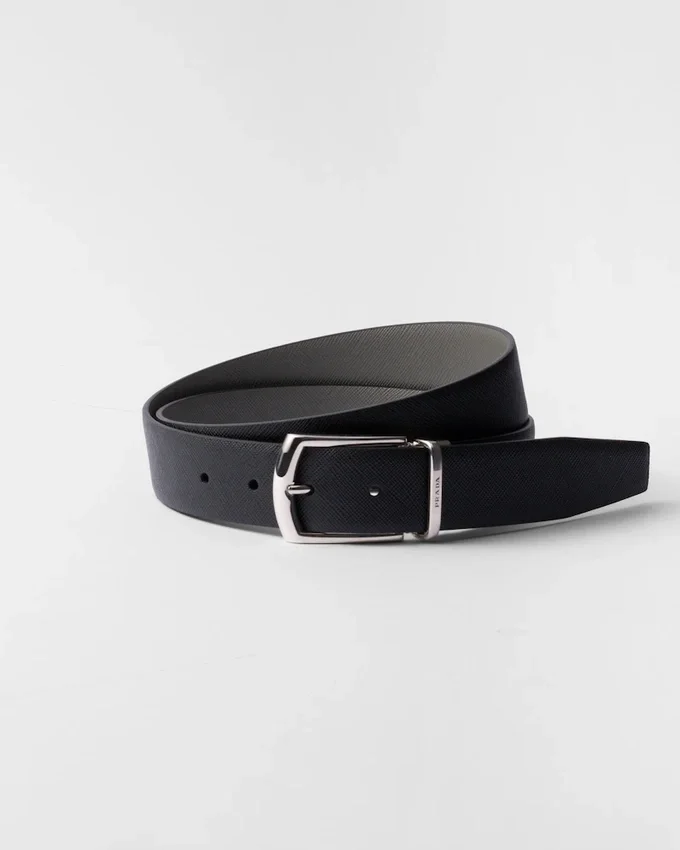 This Fine Saffiano Leather Belt Characterized by Its Reversible Design Has an Elegant Metal Buckle.