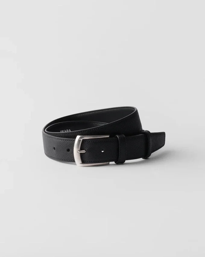 This Saffiano Leather Belt Has a Design with Refined Details and Contemporary Style. The Metal Buckle Characterized by Sleek, Curved Lines Completes the Accessory.