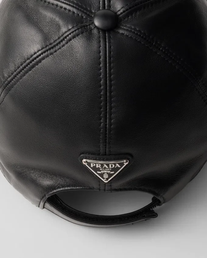 The Classic Baseball Cap is Given a Modern Twist Thanks to the Use of Soft Nappa Leather. The Cotton-Lined Accessory is Decorated with the Enameled Metal Triangle Logo.