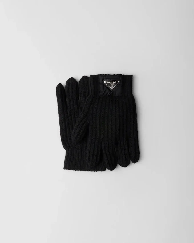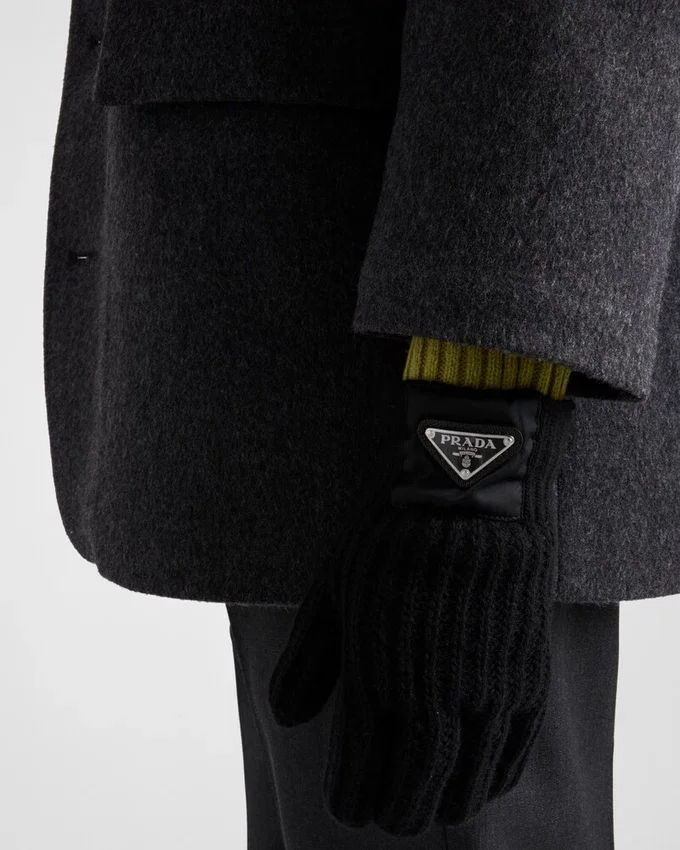The Iconic Triangle Logo Embellishes These Sporty Cashmere and Wool Gloves Completed with Re-Nylon Details.