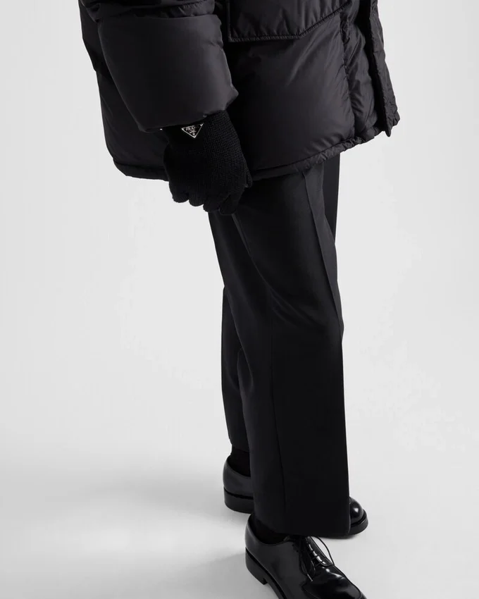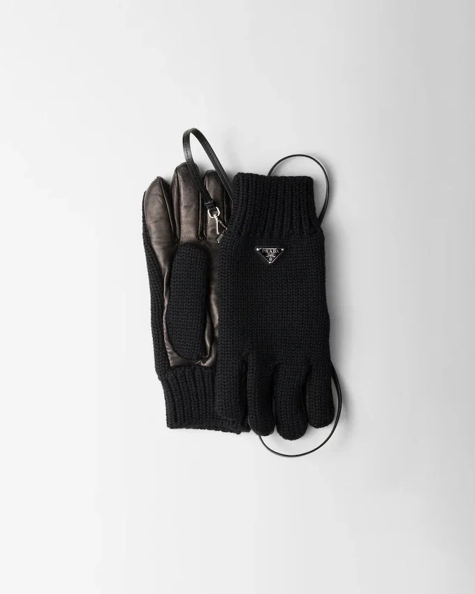 The Iconic Enameled Metal Triangle Logo Embellishes These Versatile and Refined Wool and Nappa Leather Gloves Completed with a Removable Leather Strap.