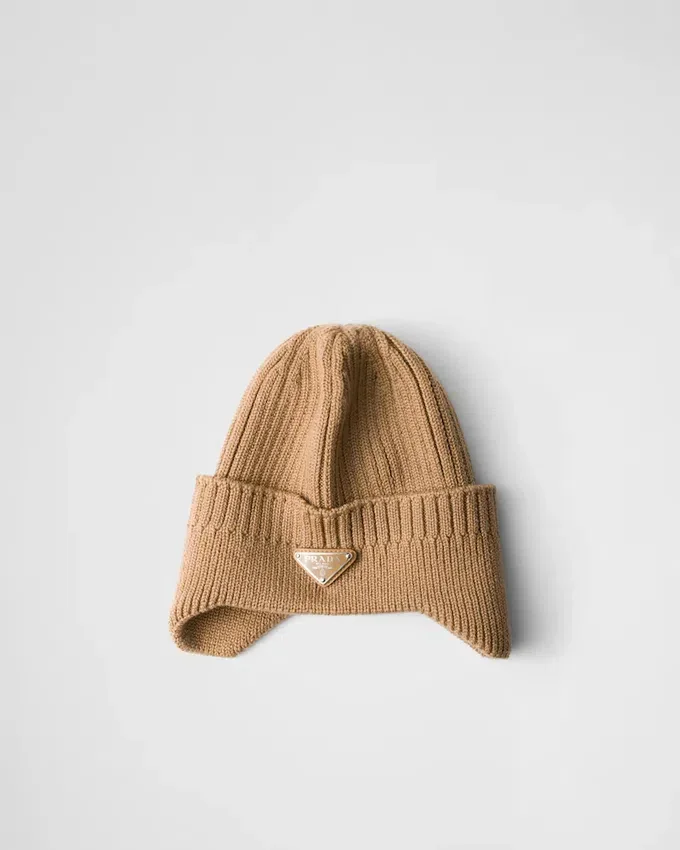 The Iconic Enameled Metal Triangle Logo Embellishes This Cozy Knit Beanie Made of Warm Wool.