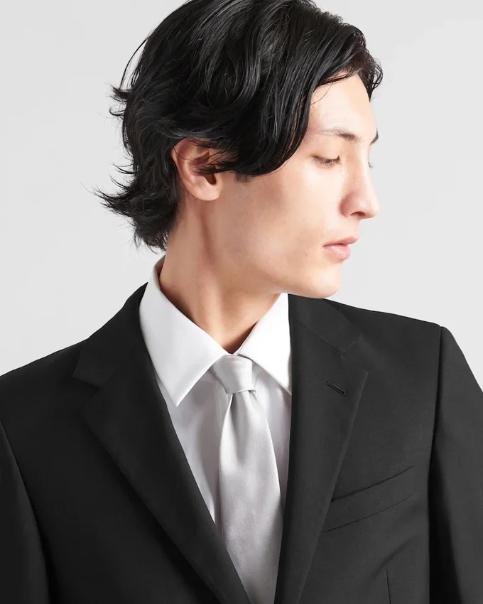 This Satin Tie Comes in an Elegant Monochrome Shade. The Accessory is Embellished by the Discreet Lettering Logo on the Front.