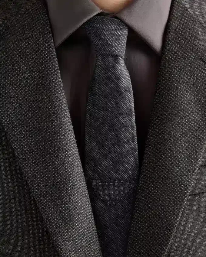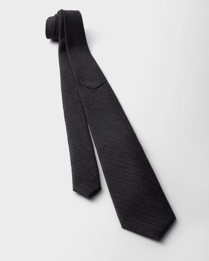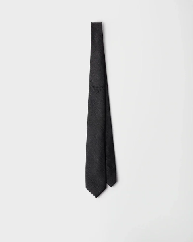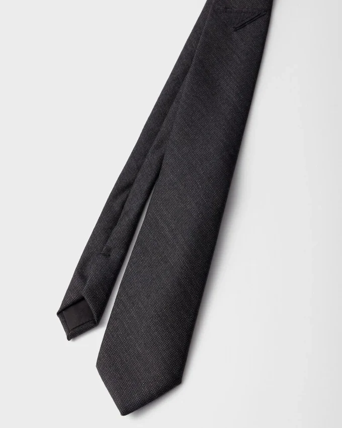 The Tie, an Emblem of Formal Elegance, is Reinterpreted with a Minimalist Wool Design. The Sleek, Iconic Shape of the Triangle Logo Completes the Accessory with a Contemporary Note.