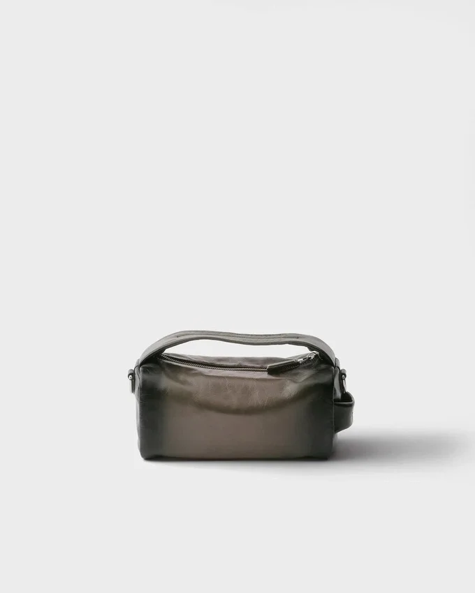This Versatile Bag with a Contemporary Design is Characterized by Minimalist Lines and Sleek, Refined Details. The Leather with an Antiqued Finish Enriches the Accessory, Completed with Both a Handle and Shoulder Strap for Versatile Wear.