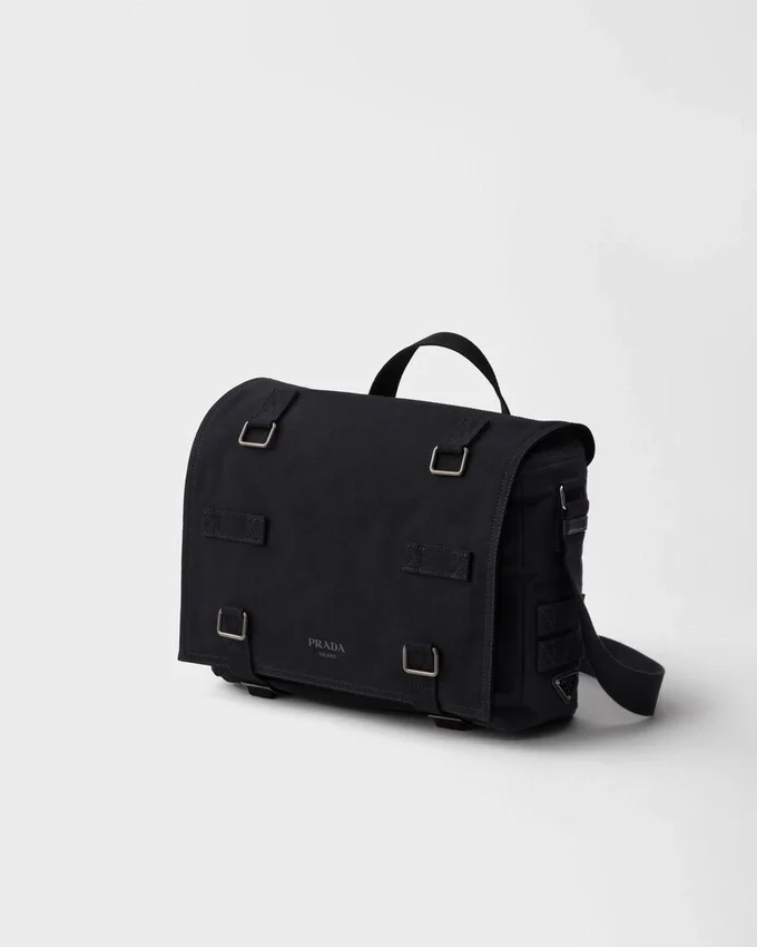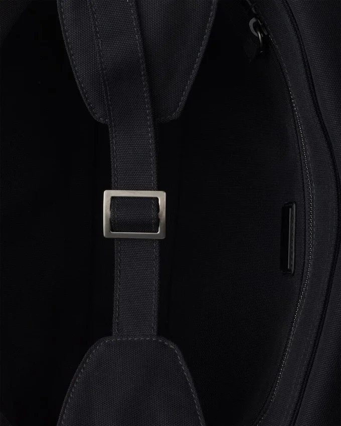 The Pragmatic Simplicity of Utility Wear Inspires This Canvas Bag. A Sleek Volume, Equipped with Both a Handle and a Shoulder Strap for Multiple Carrying Options, and a Spacious Interior with Pockets Designed to Hold All the Essentials, from Work to Leisure. The Minimalist Form Creates a Versatile, Contemporary Accessory That Interprets Functionality as an Authentic Expression of Style.