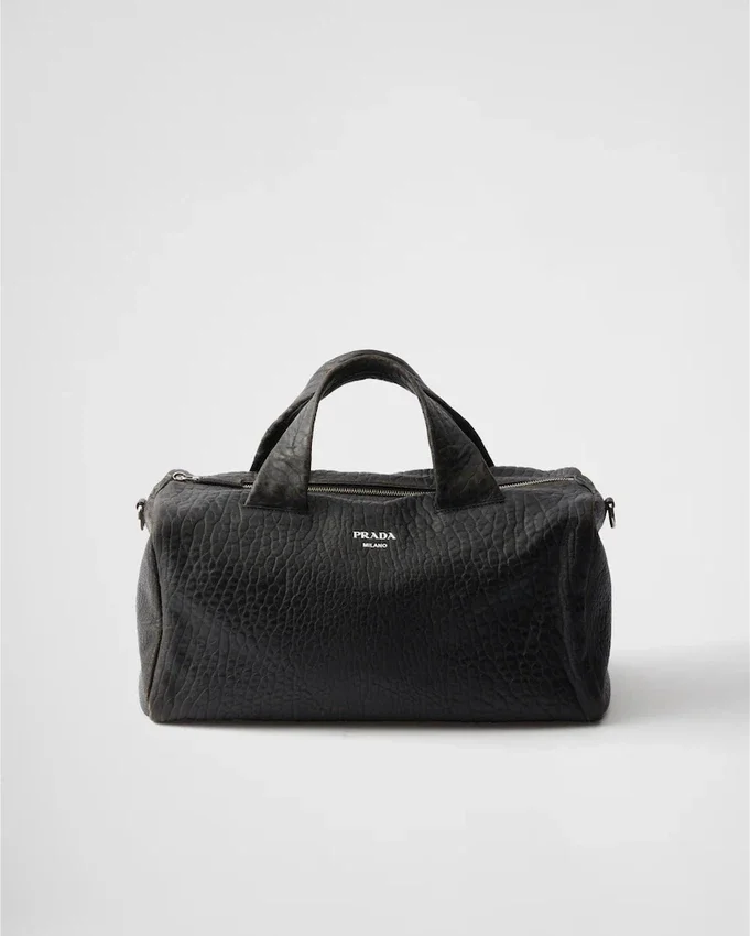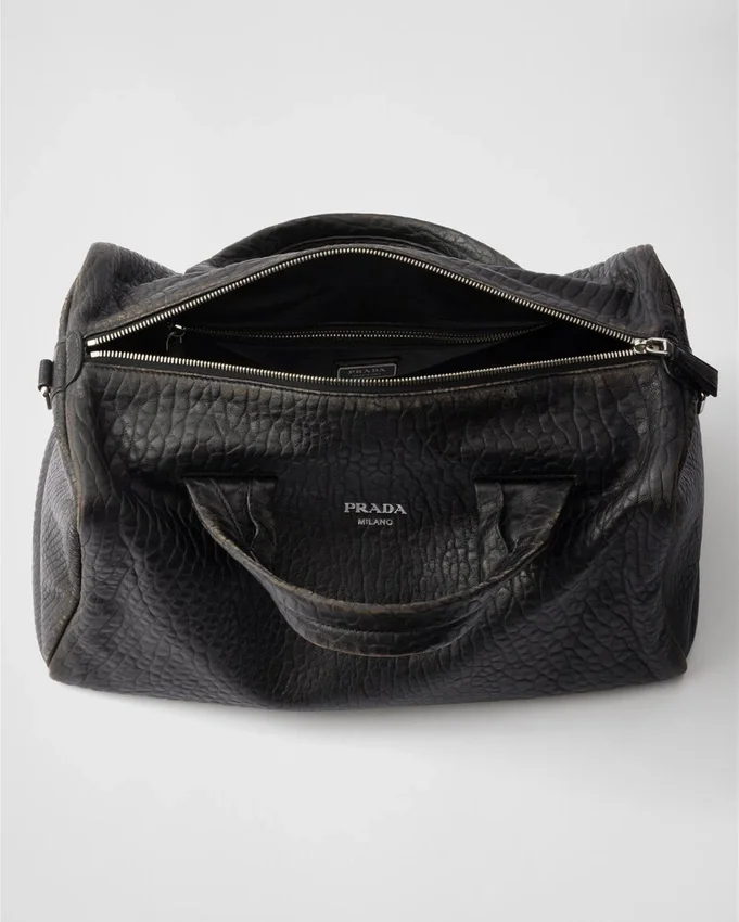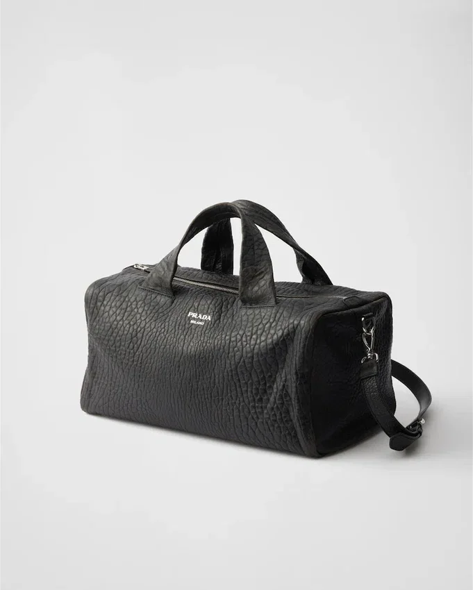 This Duffle Bag with a Geometric, Minimalist Design Embodies a Contemporary and Functional Style. The Soft Touch of Nappa Leather Enriches the Roomy and Refined Accessory Decorated with the Lettering Logo.