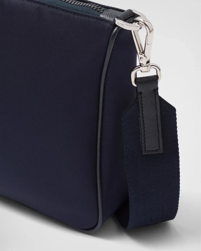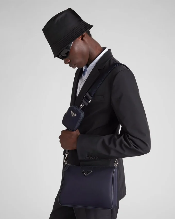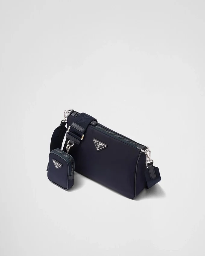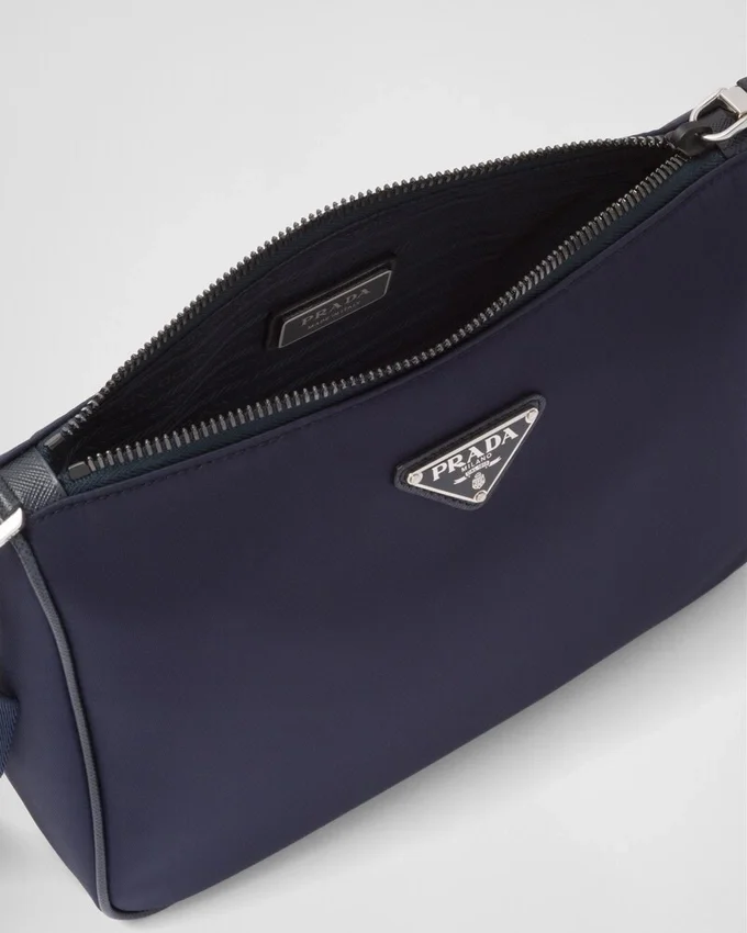 A Sporty Soul Characterizes This Shoulder Bag Made of Re-Nylon, a Fabric Made from Regenerated Nylon Yarn Produced from Recycled, Purified Plastic Materials Collected in the Ocean, Fishing Nets, and Textile Fibers. The Accessory, Enhanced with Fine Saffiano Leather Trim, Stands out for Its Removable Pouch That Adds a Contemporary Touch. The Enameled Metal Triangle Logo Stands out on the Front. For Sustainable Care to Preserve the Product’s Characteristics and Reduce Microfiber Shedding, We Recommend Not Washing the Item Too Often. Let the Product Air out After Every Use and Have It Dry Cleaned at a Specialized Ecological Dry Cleaners.