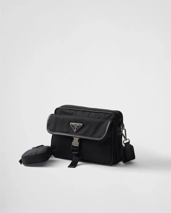 Completed by a Shoulder Strap with Detachable Mini Pouch, This Flap Bag Combines Prada’s Iconic Saffiano Leather and Re-Nylon, a Fabric Made of Regenerated Nylon Yarn Obtained from Recycled, Purified Plastic Materials Collected in the Ocean, Fishing Nets, and Textile Fibers. The Enamel Triangle Logo Decorates the Accessory, Balancing Modernity and Tradition. For Sustainable Care to Preserve the Product’s Characteristics and Reduce Microfiber Shedding, We Recommend Not Washing the Item Too Often. Let the Product Air out After Every Use and Have It Dry Cleaned at a Specialized Ecological Dry Cleaners.