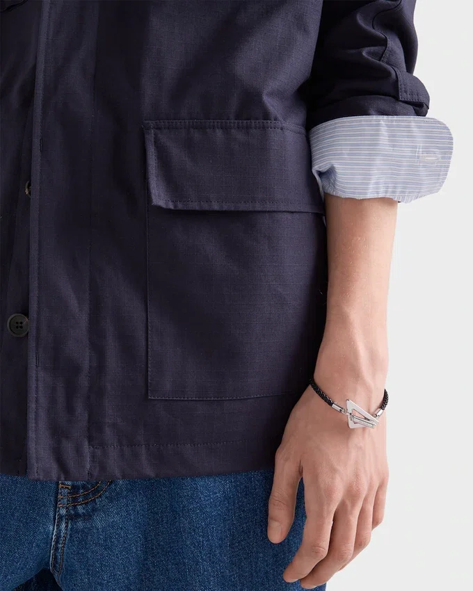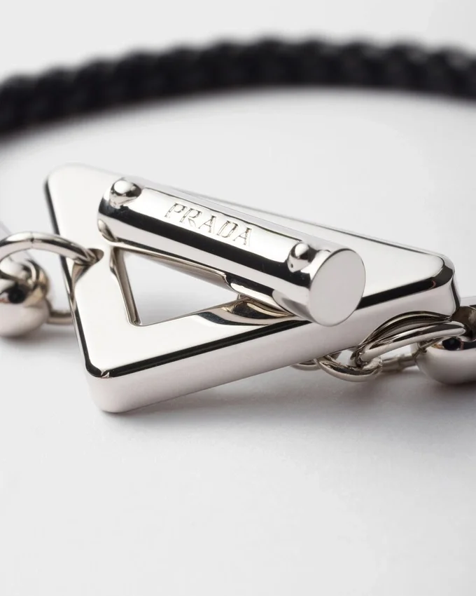 This Braided Nappa Leather Bracelet is Defined by the Geometric Metal T-Bar Clasp That Echoes the Iconic Enameled Metal Triangle Logo.
