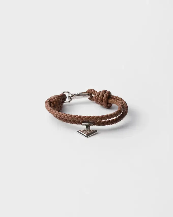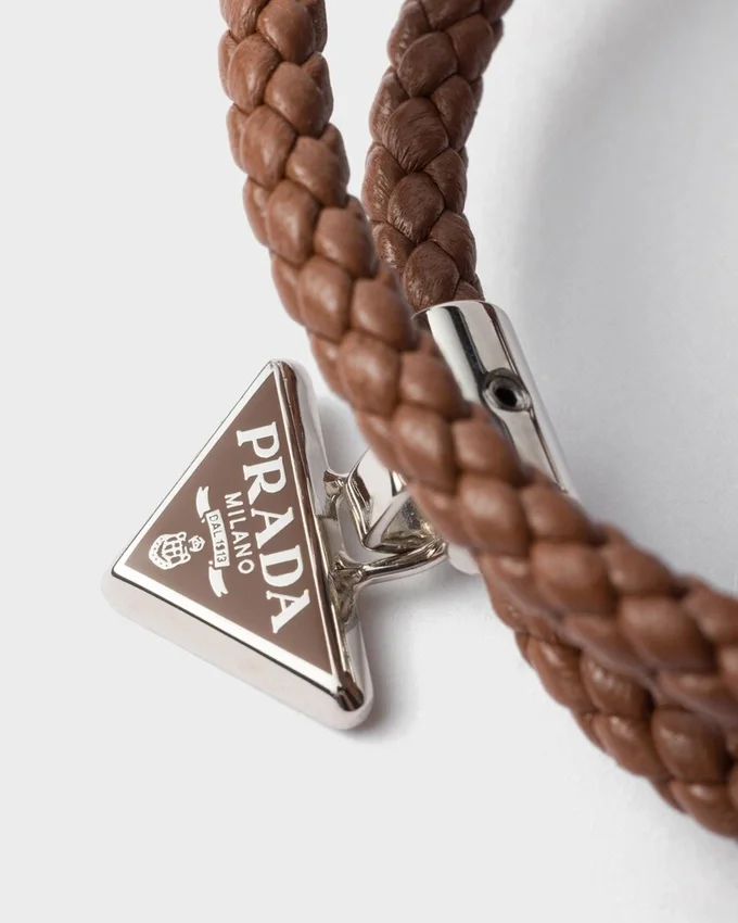 This Braided Leather Bracelet is Defined by Its Modern Clasp with Triangle Logo.
