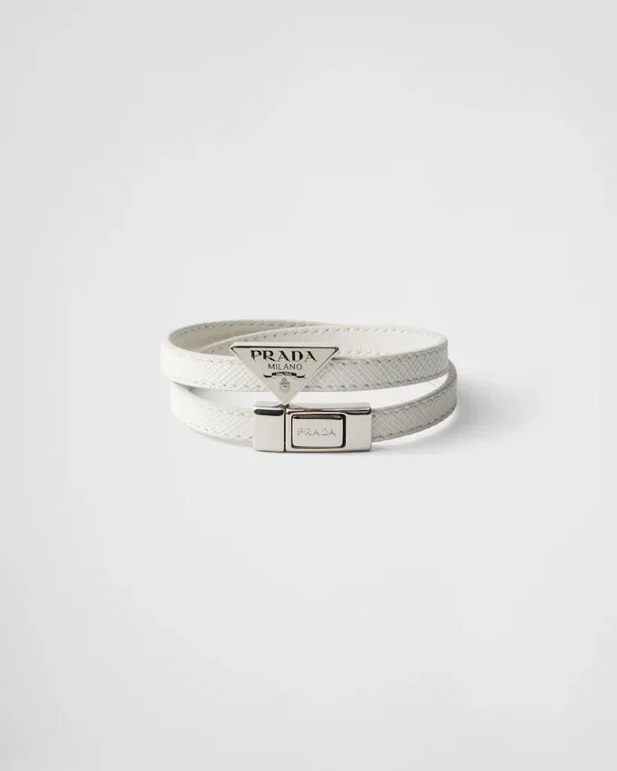 This Double Bracelet Made in Leather Has a Double Prada Logo.