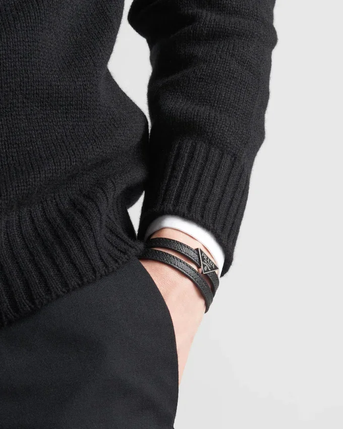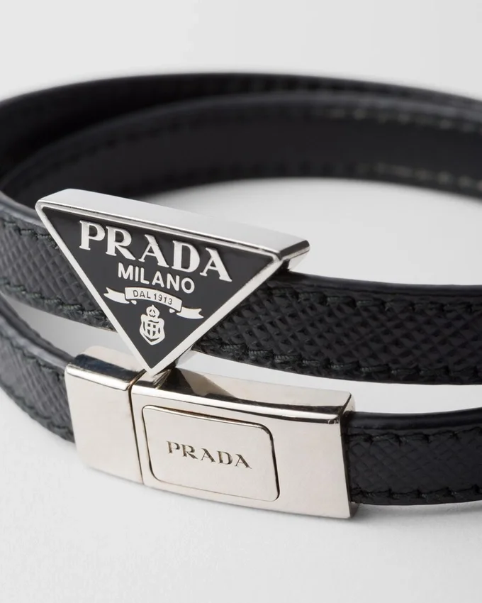 This Double Bracelet Made in Leather Has a Double Prada Logo.