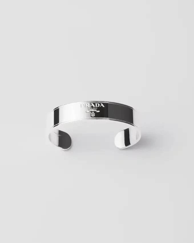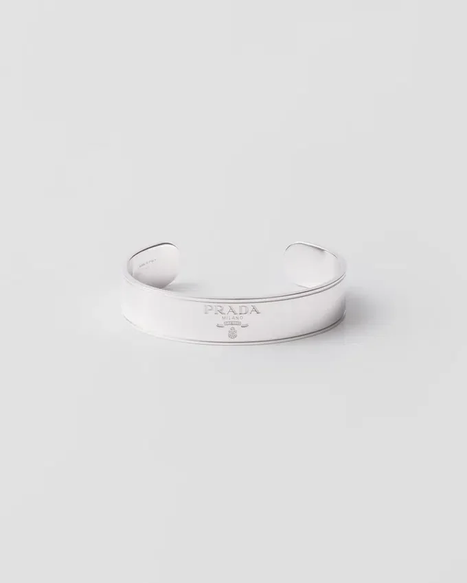 Minimalist Lines Define This 925 Sterling Silver Cuff Bracelet with a Distinctive Design Embellished with the Lettering Logo.