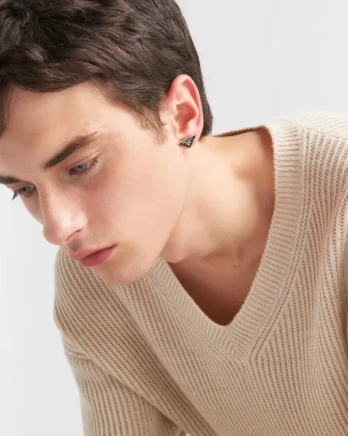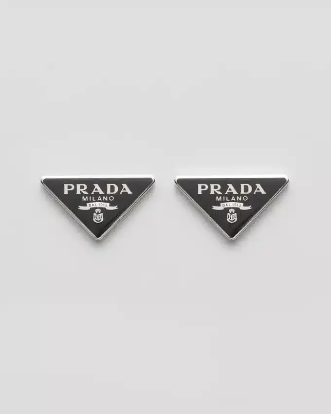Finished in Enamel, Prada’s Historical Symbol Defines This Pair of Earrings. Iconic and Essential in Form, the Triangle Logo is the Protagonist of a New Line of Jewelry Made of 925 Sterling Silver That Reinterprets Punk Influences in a Modern Way.