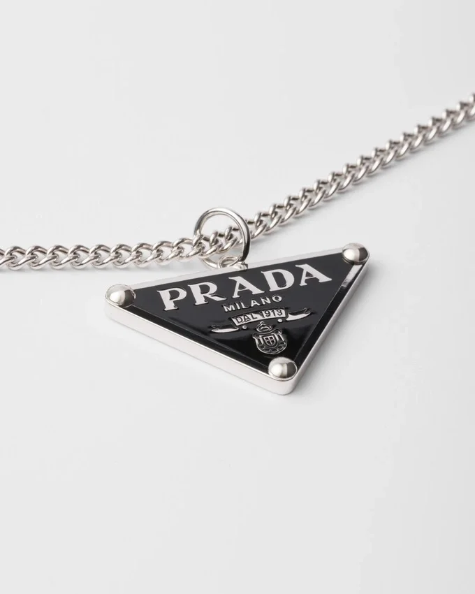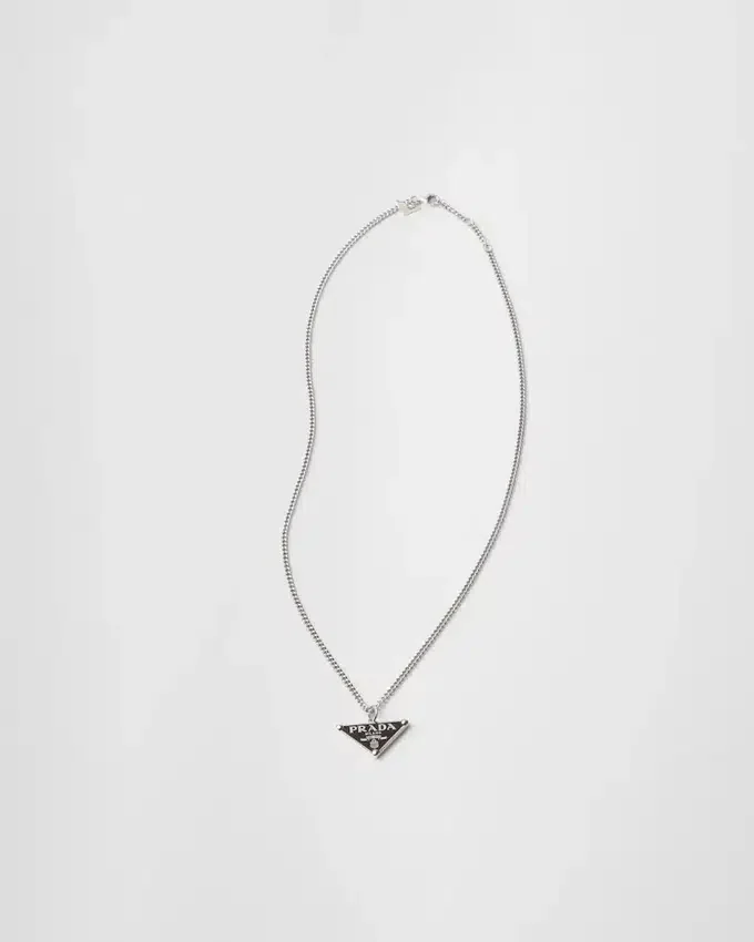 The Emblematic Enameled Triangle in Its Simplest Form Embellishes This Necklace with a Modern Design Made of 925 Sterling Silver with Palladium Finish.