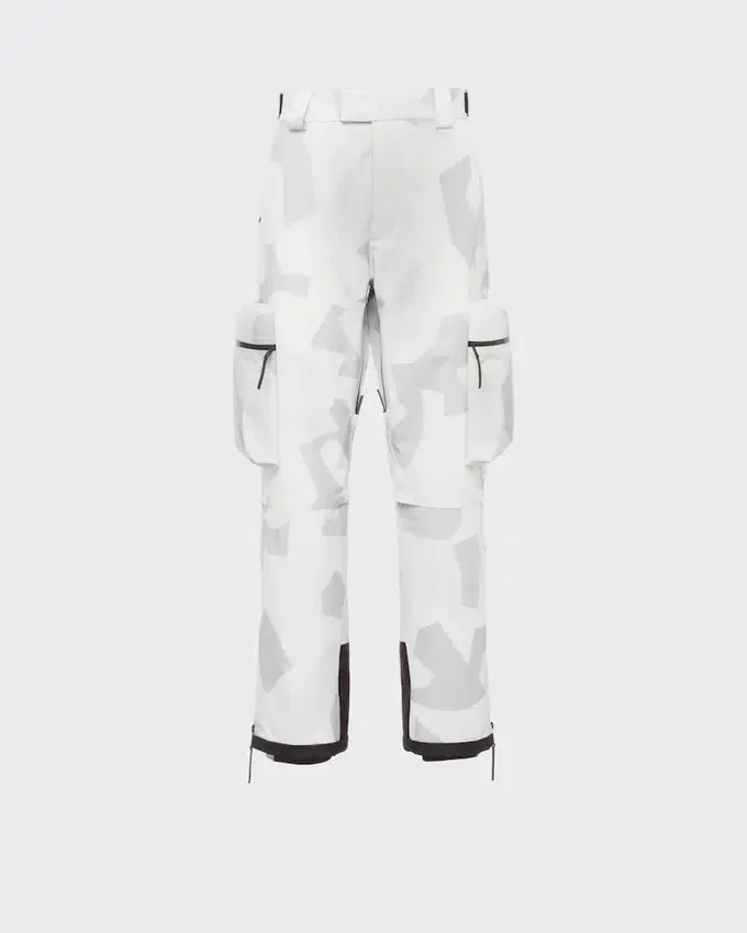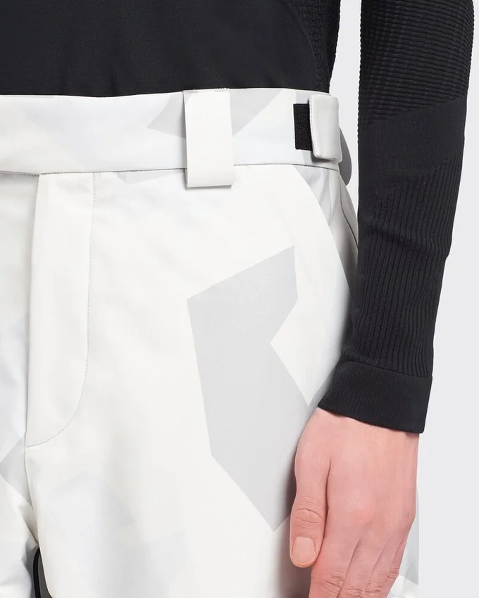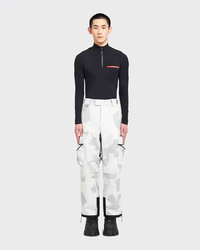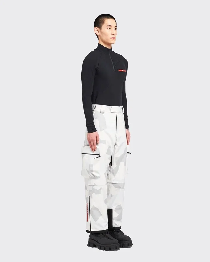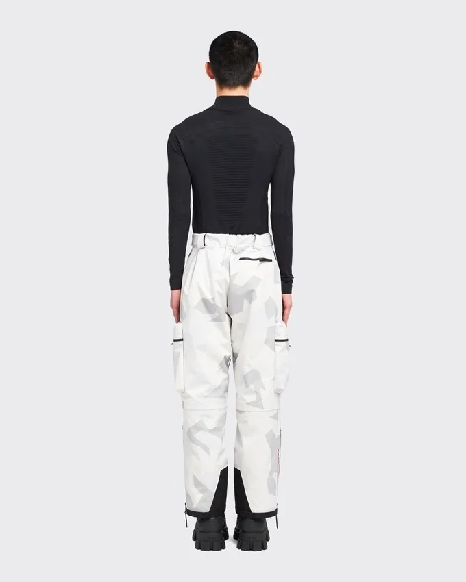 Featuring a Print Inspired by Arctic Camouflage Used in Snowy Landscapes, These Snowboard Pants Are Made of Technical Fabric, a Triple-Layer Bonded Polyester Material Designed to Ensure Excellent Protection Against Water and Wind and Maintain Optimum Breathability. The Iconic Prada Linea Rossa Latex Rubber Logo Label Decorates the Garment.