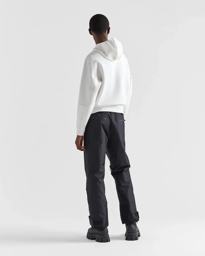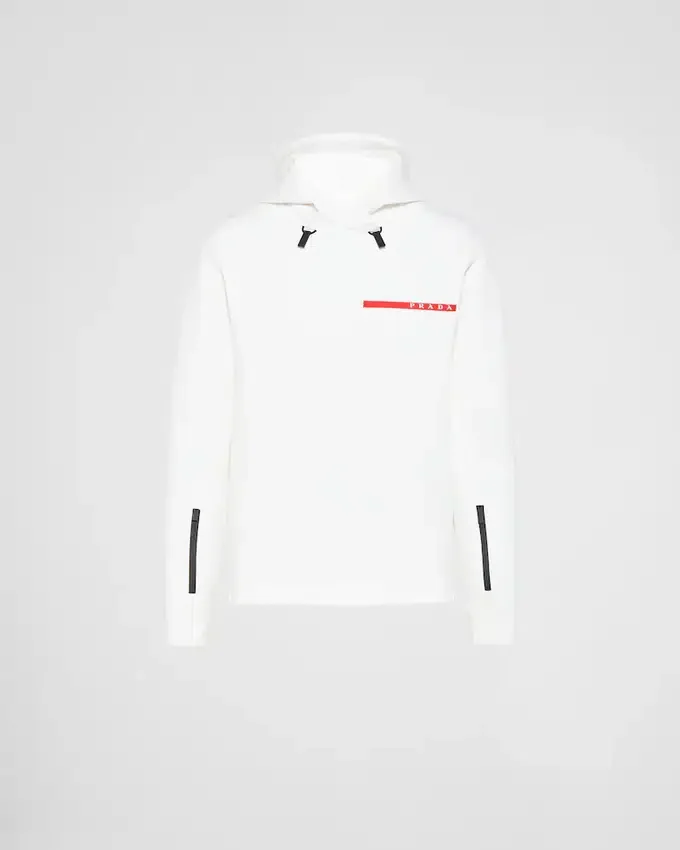 Sport-Inspired Details Define the Style of This Boxy Hoodie Made of Double Jersey, a Technical Fabric Produced from Recycled Polyester Fibers. Defined by Its Hooded Design with Long Sleeves, the Garment Has Heat-Sealed Tape Pockets on the Sleeves in a Contrasting Color and a Latex Logo Badge on the Front.