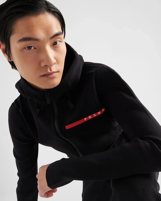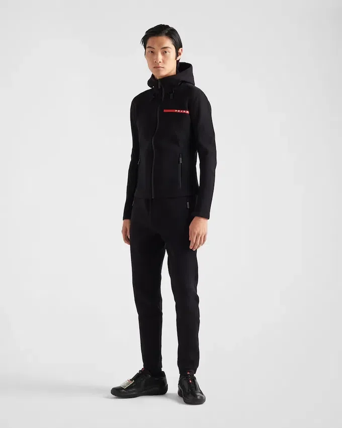 A Slim-Fit Silhouette Characterizes This Hoodie That Blends Technical Elements and Sports Details. The Design with Hooded Collar and Front Zipper is Completed with the Prada Linea Rossa Logo.