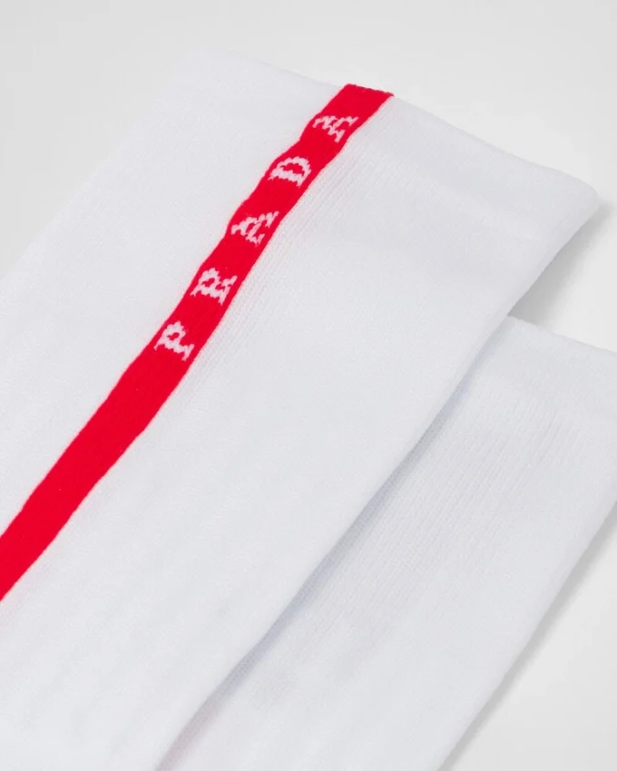 These Sleek, Sporty Socks Made of Technical Yarn Are Defined by Their Design That Ensures High Performance. The Iconic Prada Linea Rossa Decorates the Sock.