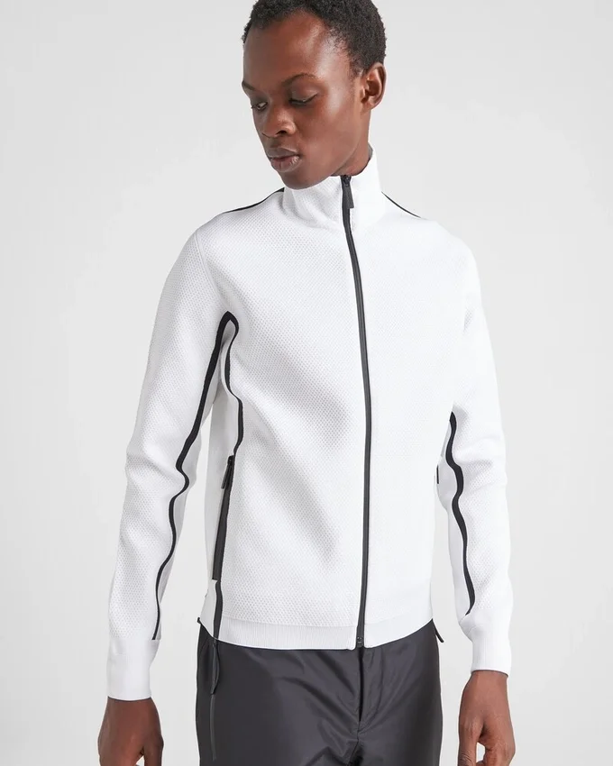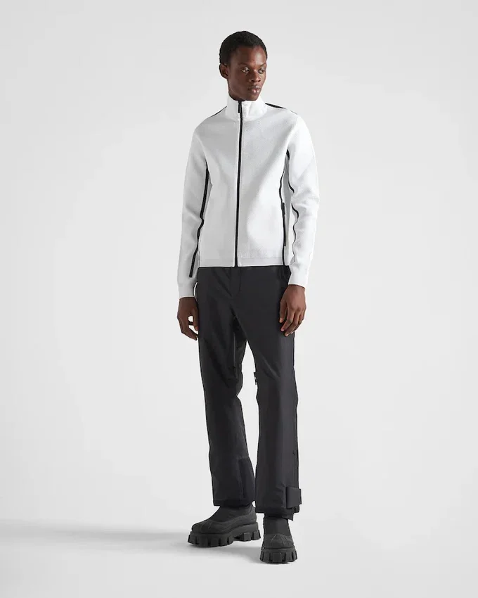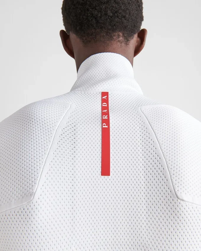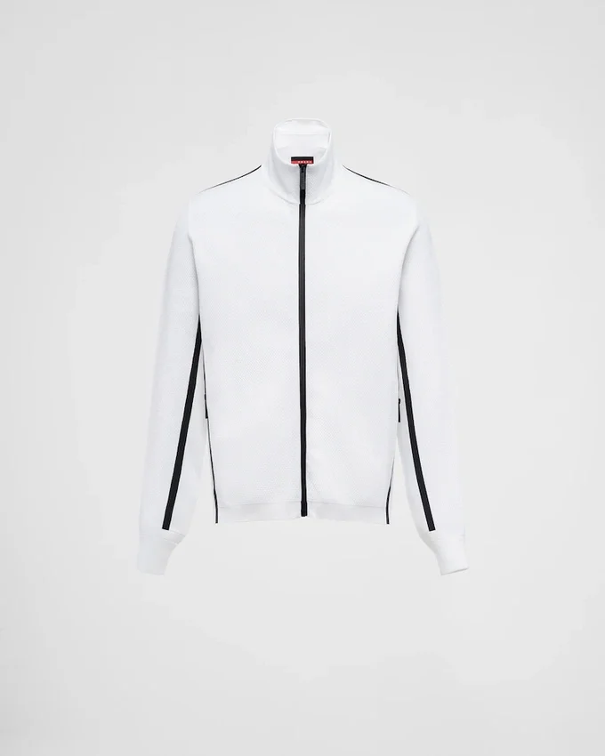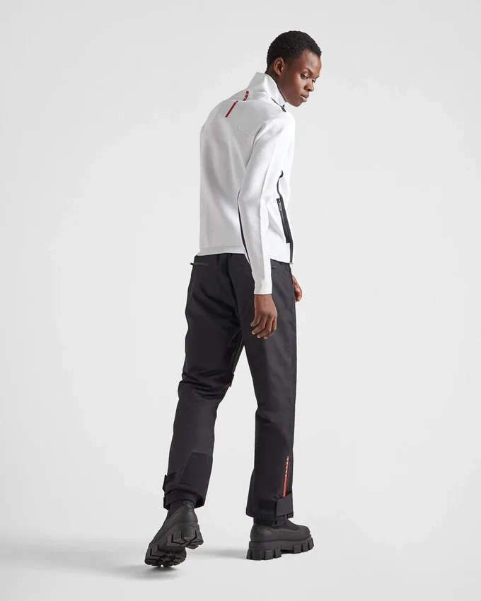 This Techno Knit Sweatshirt with Sporty Allure is Characterized by Its Versatile, Minimalist Mood. The Garment Defined by Straight Lines and a Refined Turtleneck is Decorated with the Iconic Linea Rossa Latex Logo.