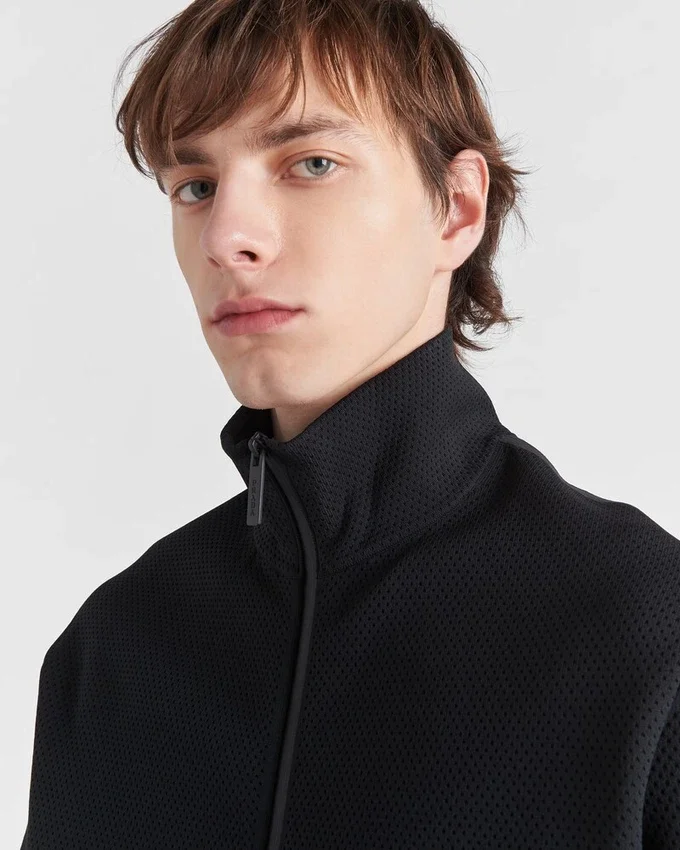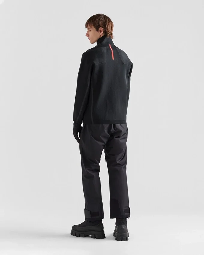 This Techno Knit Sweatshirt with Sporty Allure is Characterized by Its Versatile, Minimalist Mood. The Garment Defined by Straight Lines and a Refined Turtleneck is Decorated with the Iconic Linea Rossa Latex Logo.