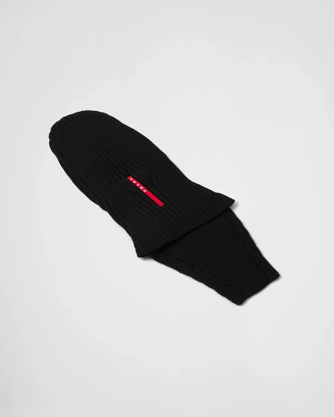Inspired by Technical Mountain Styles, This Balaclava Stands out for Its Plain Knit and Sporty Character. Prada’s Iconic Linea Rossa Logo Completes the Design.