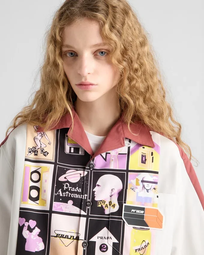 For the Timecapsule Drop #62, Prada Looks at the Archives for Its New Limited-Edition Shirt Made from Upcycled Fabrics. The Exclusive Style Features a Dynamic Print Inspired by a Retrofuturistic Style That Blends Iconic Motifs and Pop Symbols in Vibrantly Colored Graphic Art. Available Exclusively Online for Just 24 Hours, the Drop Includes the Timecapsule Shirt and Its Nft Digital Version That Lets You Become Part of Prada’s Exclusive Crypted Nft Community.