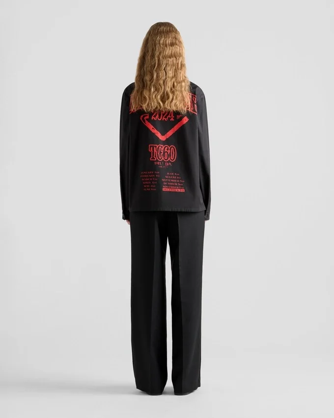 For the Timecapsule Drop #60, Prada Presents the Third of a Series of Shirts Inspired by Rock Band Tees. The Limited Edition Style Plays with the Inherent Duality of the Prada Identity, Combining Rock Details and Strong Color Contrasts with the Vintage Finish of the Exclusive Print for the Month of December. Available Exclusively Online for Just 24 Hours, the Drop Includes the Timecapsule Shirt and Its Nft Digital Version That Lets You Become Part of Prada’s Exclusive Crypted Nft Community.