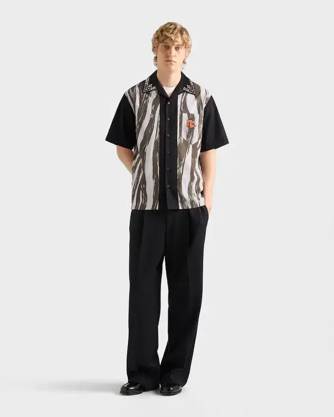 The Timecapsule Drop #76 Presents a Contemporary Reinterpretation of the Prada Archives. A Composition of Seemingly Contrasting Elements Shapes the Limited-Edition Shirt, Characterized by an Abstract Print and Studs That Embellish the Bowling Collar. Available Exclusively Online for Just 24 Hours, the Drop Includes the Timecapsule Shirt and Its Nft Digital Version That Lets You Become Part of Prada’s Exclusive Crypted Nft Community.