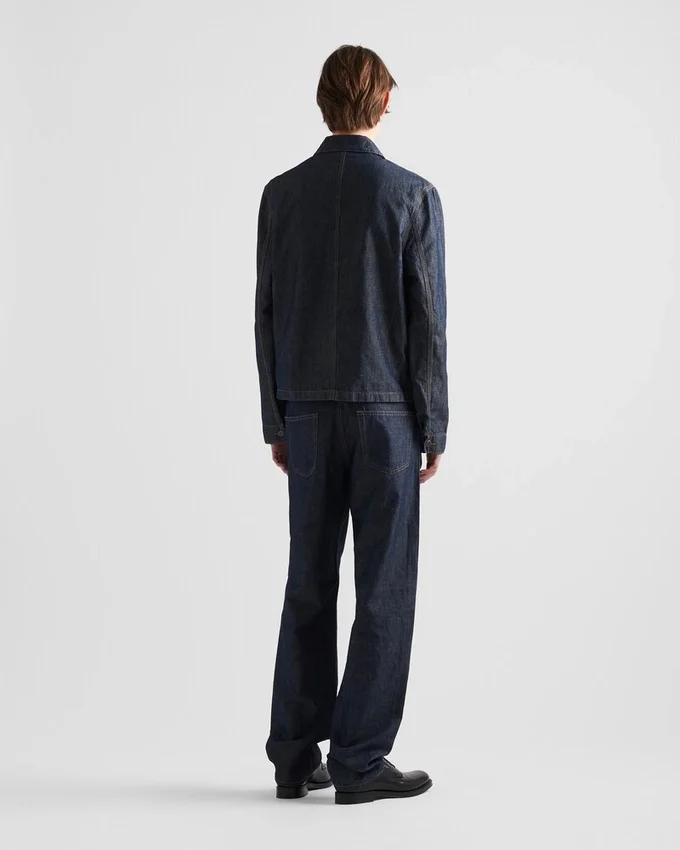 This Blouson Jacket Made of Chambray Enhanced with a Rinsed Treatment Features a Timeless Silhouette and Casual Attitude. The Lightweight Garment, Defined by Classic Contrasting Top-Stitching, is Enriched by the Iconic Triangle Logo Applied on the Breast Pocket.