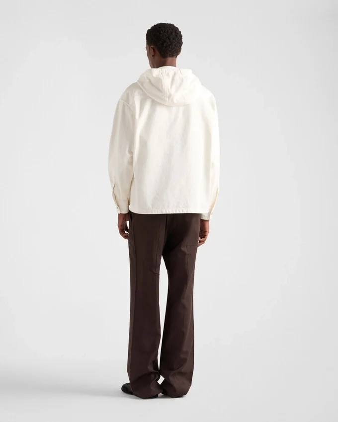 Archetypal Silhouettes Are Reinterpreted with a Contemporary, Sporty Attitude That Mixes Shapes and Materials in Original Combinations. This Denim Shirt Has a Minimalist Design Defined by the Hood, Original Details That Create a Hybrid Garment Completed by the Sleek Geometric Shape of the Triangle Logo.