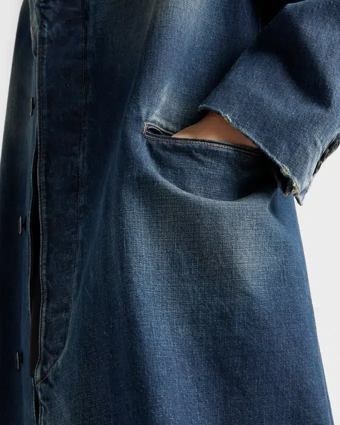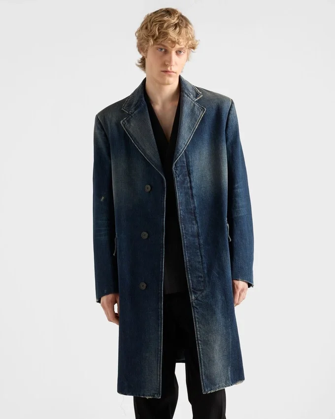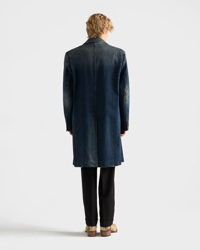 A Subtle Play of Contrasts Defines This Denim Coat with a Sleek, Precise Cut Emphasized by New Materials and Details. The Minimalist Silhouette is Enhanced by a Special Washed Treatment That Adds Dimension and Depth to the Garment with a Versatile and Distinctive Style.