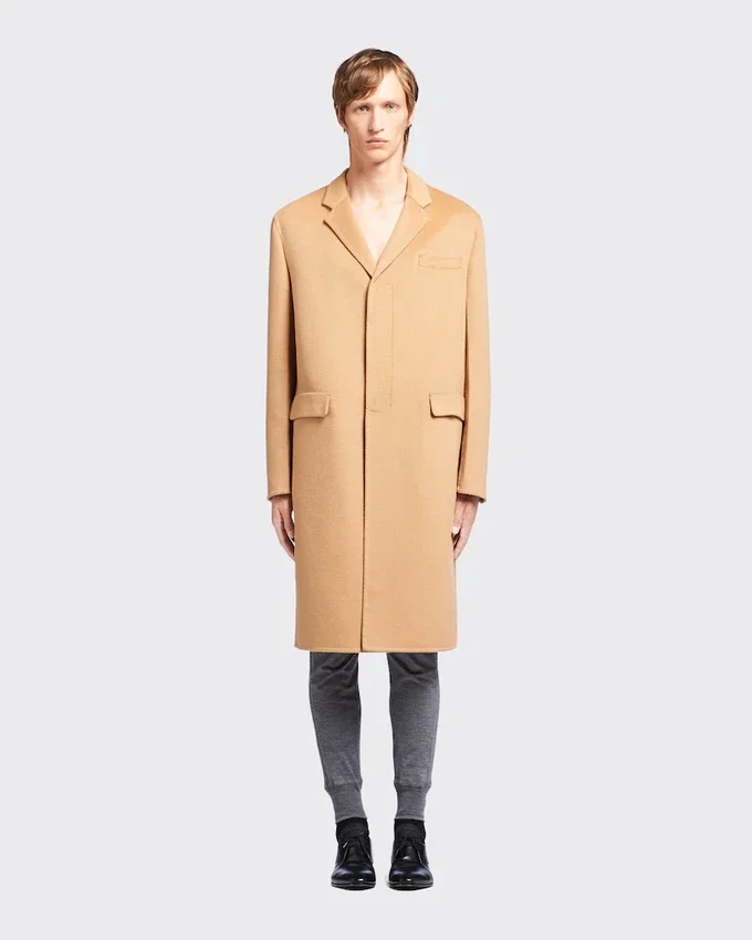 A Sleek Design and Fine Sartorial Tailoring Characterize This Cashmere Coat. Prada Blends Innovative Spirit and Italian Know-How to Produce Warm, Cozy High-Quality Cashmere with an Extremely Soft Touch.