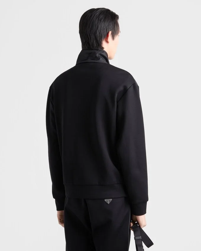 Cotton Fleece Zipper Jacket with Re-Nylon Details