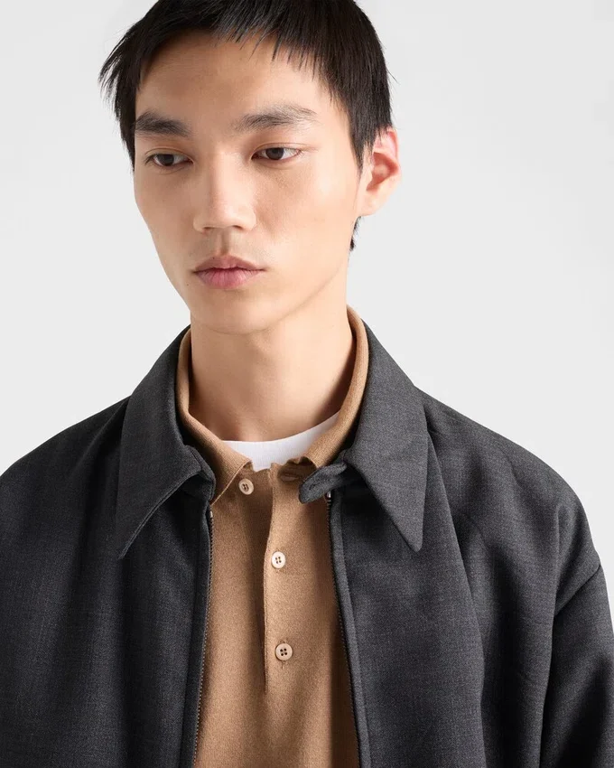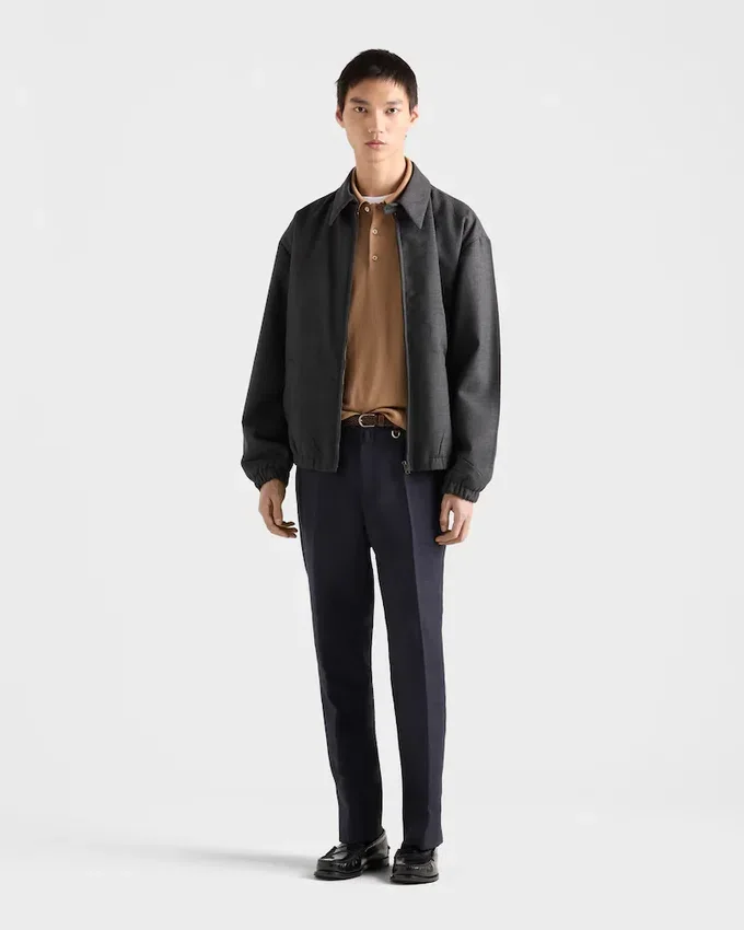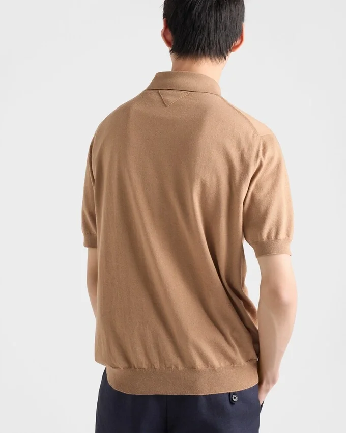 Sleek, Contemporary Lines Define This Cashmere and Silk Polo Shirt Embellished with the Iconic Geometric Shape of the Triangle Logo.