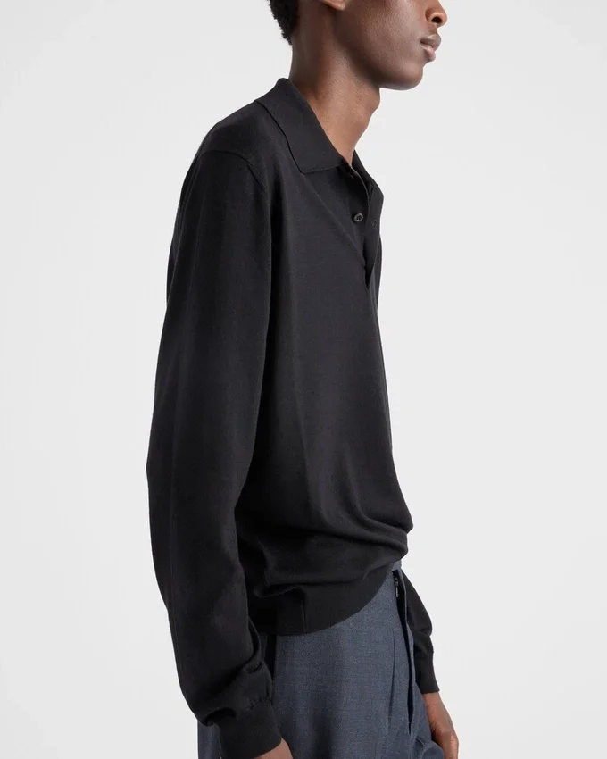 Made with a Blend of Fine Cashmere and Silk Yarn, This Polo Shirt with Classic Lines Embodies Simple Elegance and Timeless Style.