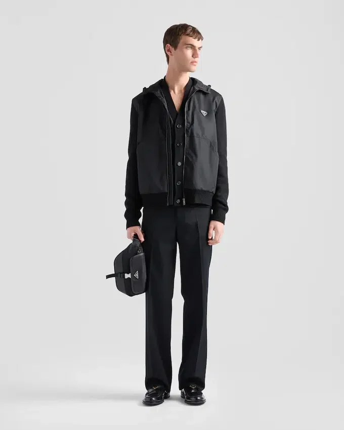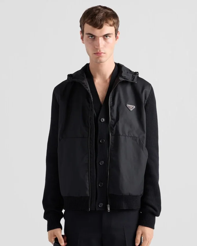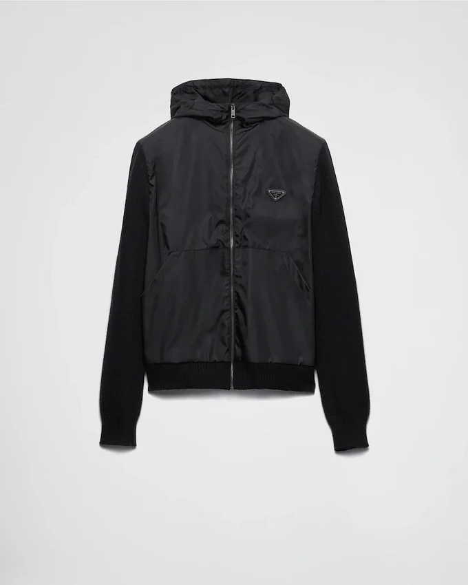 This Cardigan, Made from a Blend of Cashmere and Wool, Features a Modern and Sporty Style. The Iconic Enameled Metal Triangle Logo Adds a Unique Touch, While the Re-Nylon Details on the Front and Hood Emphasize the Functionality of the Design. For Sustainable Care to Preserve the Product’s Characteristics and Reduce Microfiber Shedding, We Recommend Not Washing the Item Too Often. Let the Product Air out After Every Use and Follow the Washing Instructions on the Label.