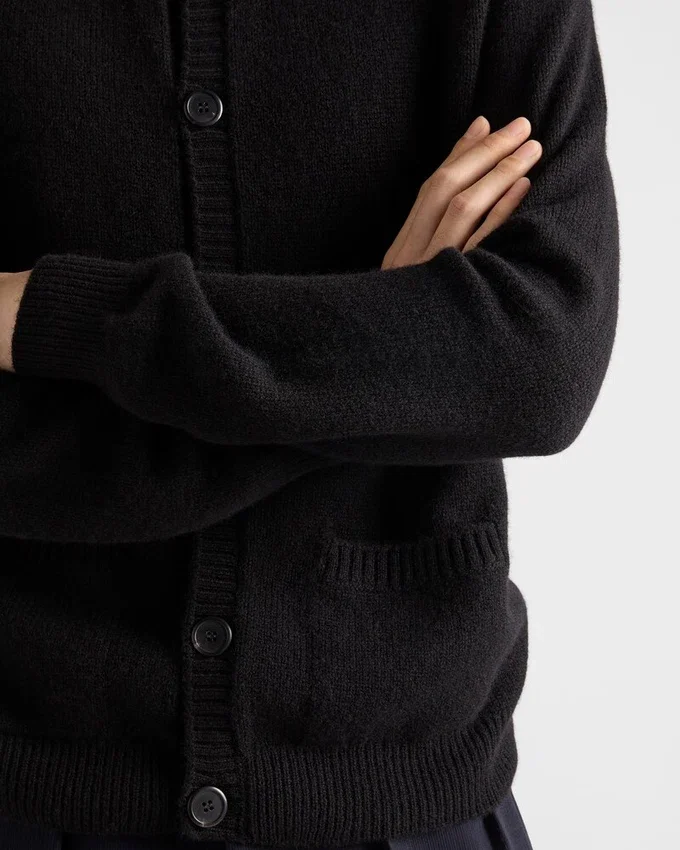 Sleek Softness, a Perfect Shape. This Slim-Fit Cashmere Cardigan Stands out for Its Plain Knit, Slim Fit, and Iconic Details Like the Triangle Logo and Patch Pockets.