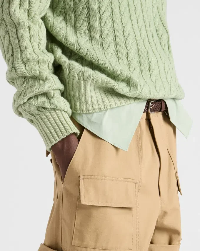 This Fine Wool and Cashmere Sweater with a Cable-Knit Motif Stands out for Its Attention to Detail. Comfort and Craftsmanship Give Shape to a Sleek, Timeless Garment.