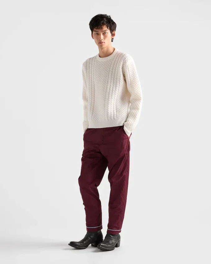 Fine Wool Meets a Design That Combines Comfort and Durability. The Refined Workmanship Enhances the Purity of the Material. The Triangle Logo Adds Its Signature Touch with Distinctive Elegance.