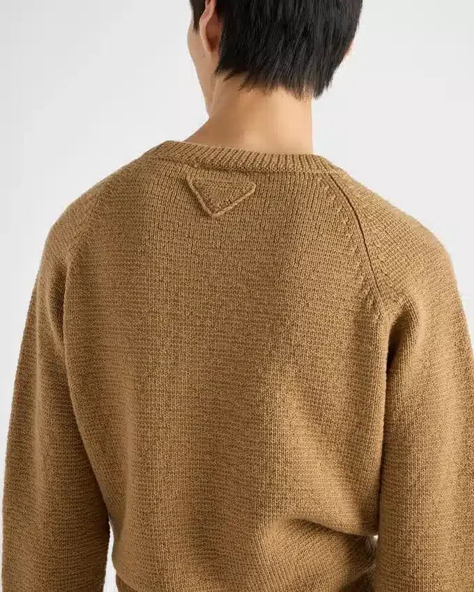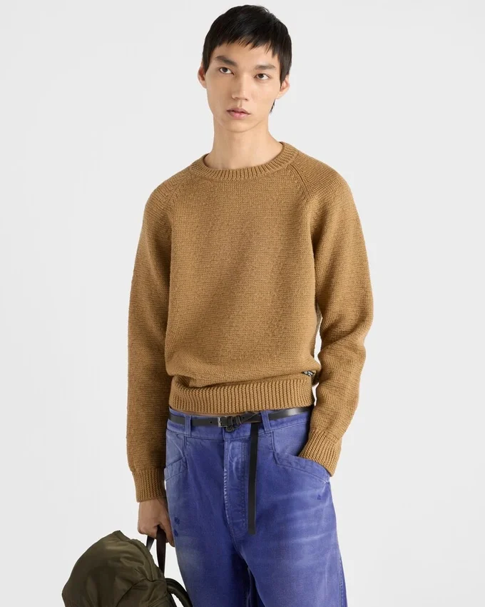This Wool Sweater Combining Sophistication and Comfort Has a Boxy Silhouette Characterized by a Refined Texture. Ribbed Knit Trim Completes the Garment Decorated with the Tonal Triangle Logo.