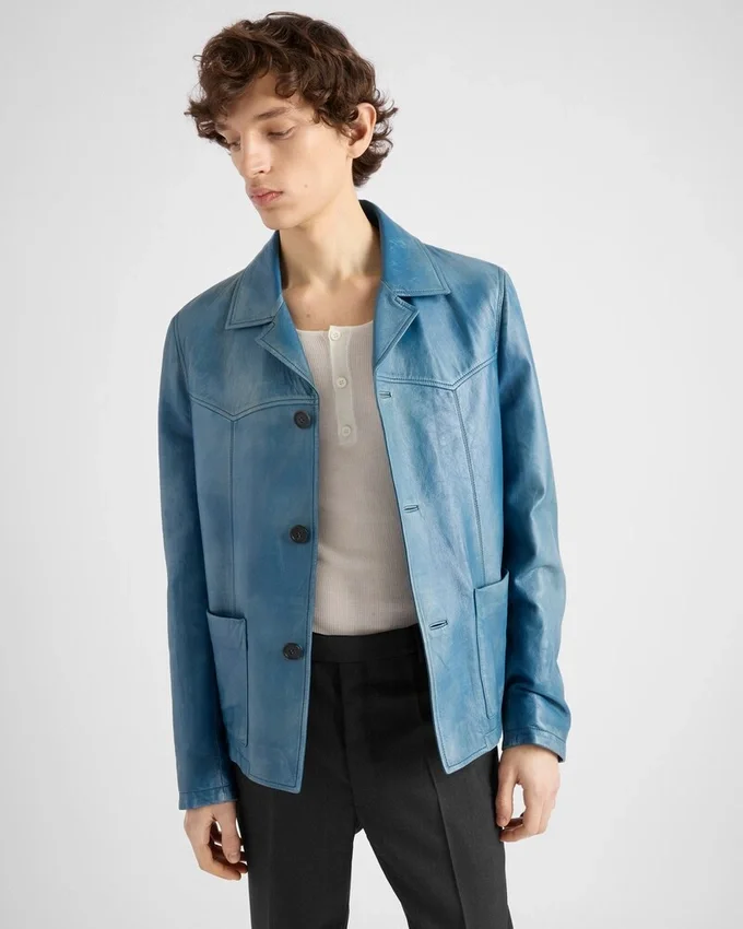 Vintage Lines and Details Define This Nappa Leather Jacket, Enriched by an Artisanal Treatment That Gives the Style an Aged Finish. The Silhouette is Characterized by Original Touches Like the Bowling Collar That Completes the Garment with a Refined Note.