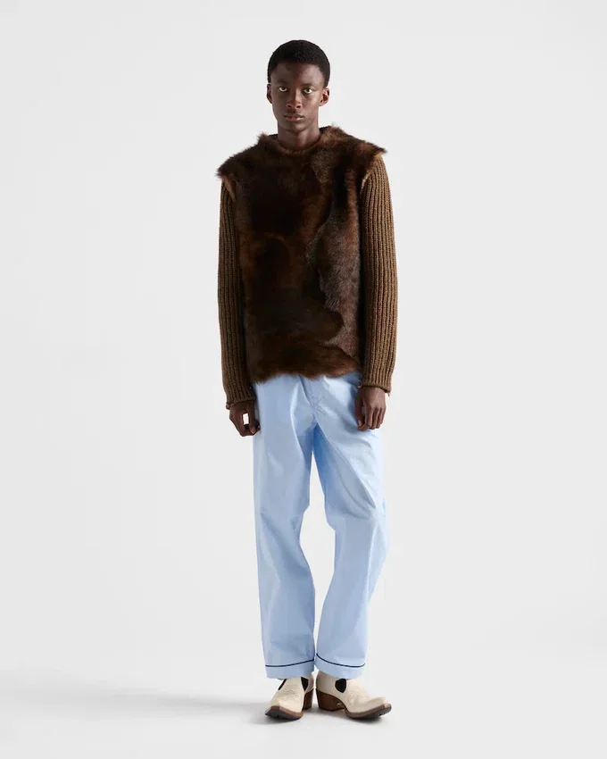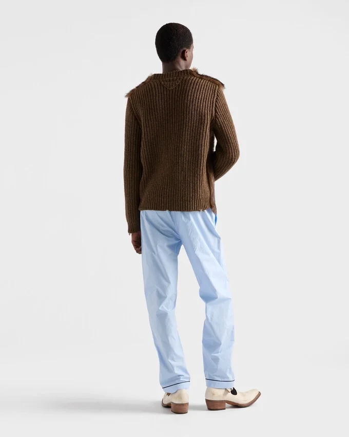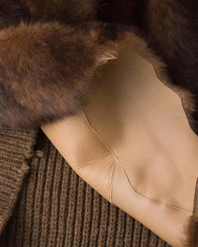The Combination of Rich Textures, Enhanced by Artisanal Craftsmanship, Gives This Wool Sweater a Unique Character. The Silhouette Plays with Soft Volumes, Highlighted by the Rugged Shearling Insert, While the Lived-In Finish Completes This Exclusive Piece, an Expression of an Instinctive and Unconventional Style.
