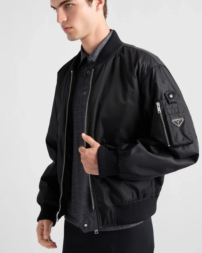 Soft Volumes Define the Silhouette of This Re-Nylon Bomber Jacket Featuring Functional Details and Decorated with the Enameled Metal Triangle Logo. For Sustainable Care to Preserve the Product’s Characteristics and Reduce Microfiber Shedding, We Recommend Not Washing the Item Too Often. Let the Product Air out After Every Use and Have It Dry Cleaned at a Specialized Ecological Dry Cleaners.