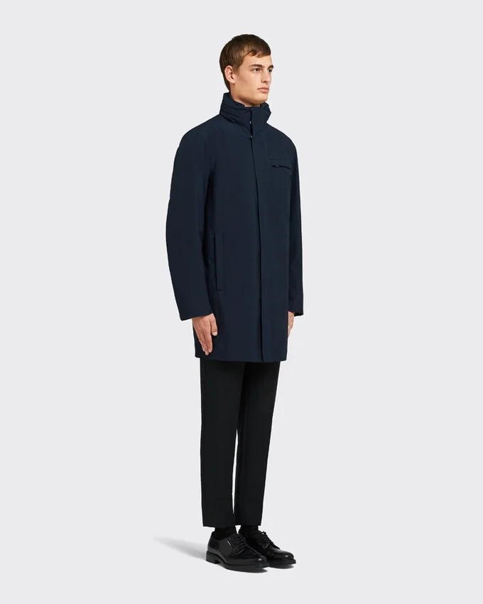 This Raincoat with High-Tech Charm Has a Padded Lining That Can Be Worn Separately as a Coat. This Garment Decorated with a Rubber Triangle Features a Stand-Up Collar with Hood and a Sleek Design with Straight Sleeves and Hem. For Sustainable Care to Preserve the Product’s Characteristics and Reduce Microfiber Shedding, We Recommend Not Washing the Item Too Often. Let the Product Air out After Every Use and Have It Dry Cleaned at a Specialized Ecological Dry Cleaners.