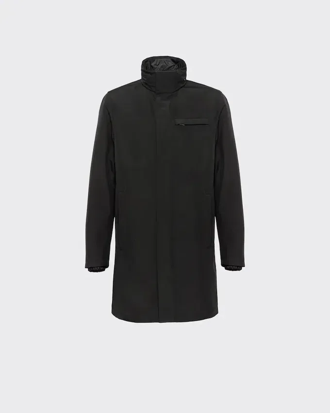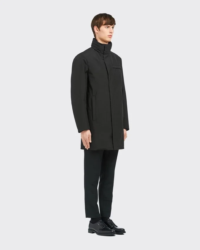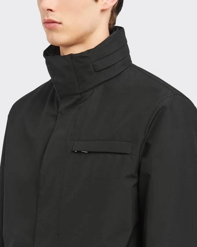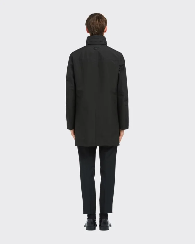 This Raincoat with High-Tech Charm Has a Padded Lining That Can Be Worn Separately as a Coat. This Garment Decorated with a Rubber Triangle Features a Stand-Up Collar with Hood and a Sleek Design with Straight Sleeves and Hem. For Sustainable Care to Preserve the Product’s Characteristics and Reduce Microfiber Shedding, We Recommend Not Washing the Item Too Often. Let the Product Air out After Every Use and Have It Dry Cleaned at a Specialized Ecological Dry Cleaners.