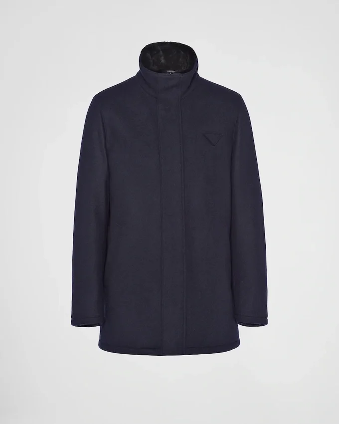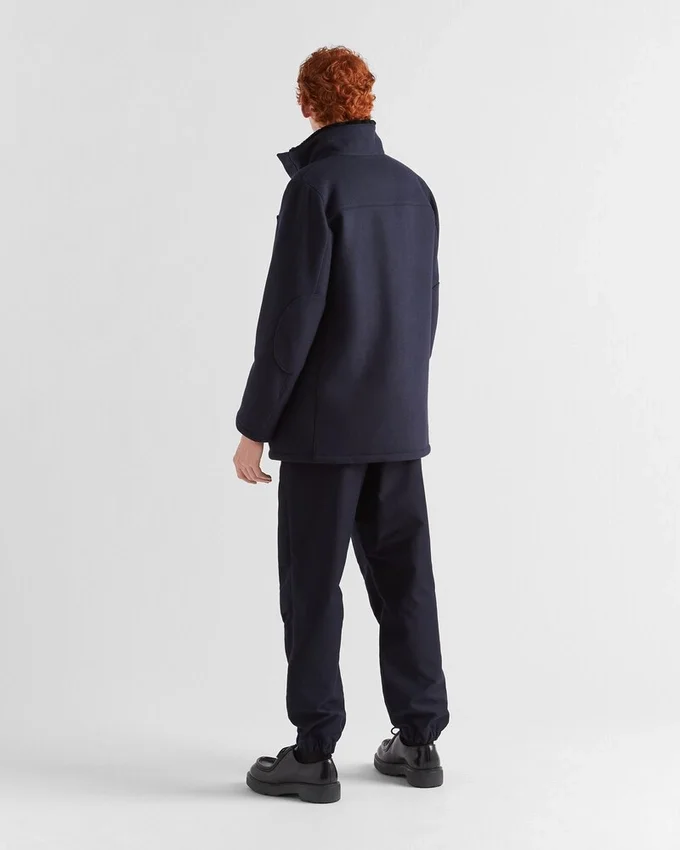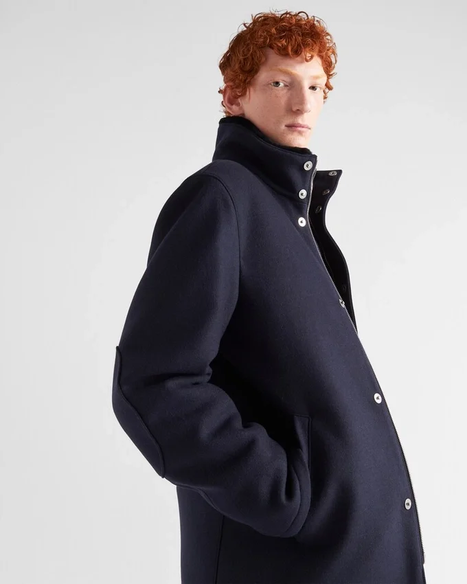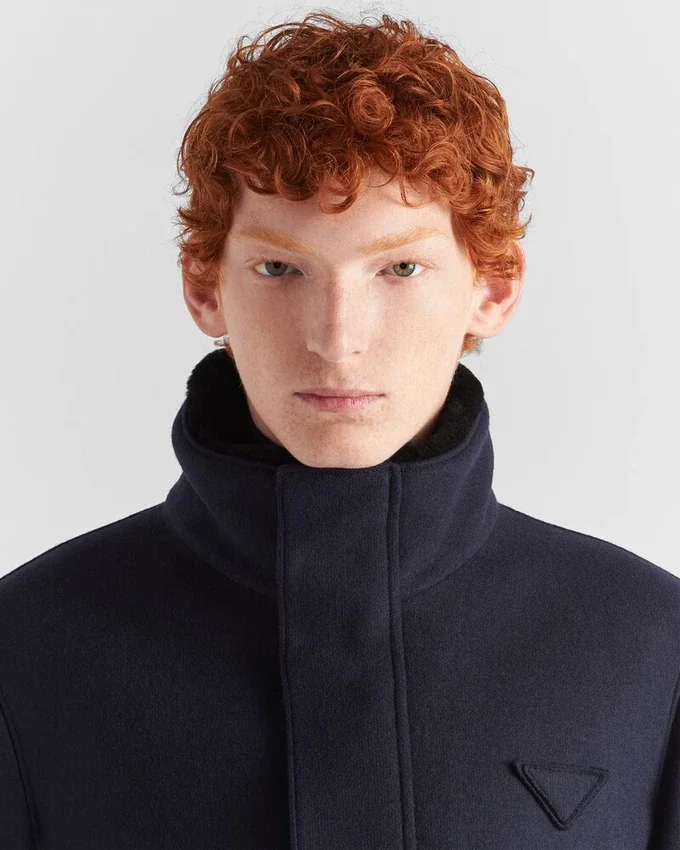 In a Process of Reduction, Simple Shapes Meet Refined Design in This Jacket with Contemporary Elegance. The Enveloping Silhouette Made of a Wool Blend Fabric is Enriched by Minimalist Details Such as the Iconic Triangle Logo, Reinterpreted in a Conceptual Way, Which Adds Its Iconic Signature Touch to the Jacket with Casual Style.