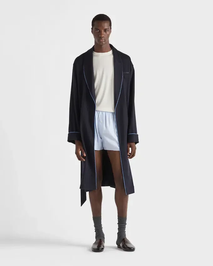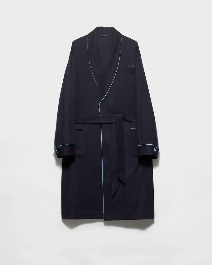 This Robe Made of Soft Cashmere Has a Classic Silhouette with Belt That Combines Comfort and Sophistication. The Warm and Enveloping Garment is Completed by the Triangle Logo.